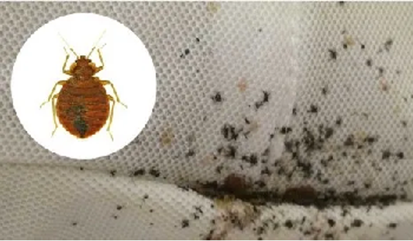 臭蟲(英文名稱bedbug,直譯為床虱),其發(fā)育過程包括卵、若蟲、成蟲3個階段。沒有翅膀,體型小,體長4-5mm,寬約3mm,呈扁平卵圓形,成蟲顏色呈草黃色或是黃色到紅褐色,吸血以后顏色更深,扁平的身體也會變腫脹。一般在床墊、床板等床周邊的各種縫隙中棲息。在縫隙的外圍,由于臭蟲活動相對密集,會留下其排出的血便形成的黑色斑點,這種沿縫隙存在的黑色斑點,是臭蟲在縫隙中密集存在的重要特征。